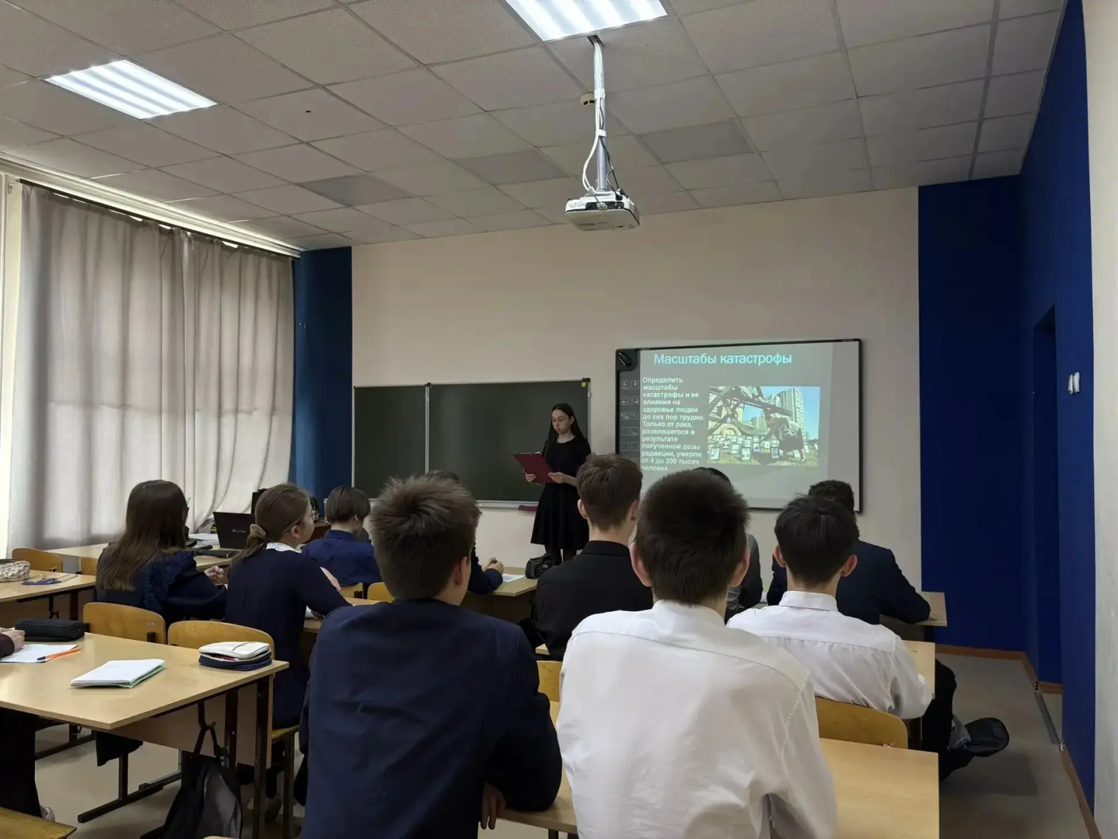 Опубликовано: 27.04.202626 апреля в России отмечается День участников ликвидации последствий радиационных аварий и катастроф. В 9А классе прошел урок, на котором ребята вспомнили о катастрофе на Чернобыльской АЭС и ее последствиях, а также о значении подвига ликвидаторов.