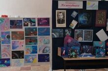 12 нче апрель - Космонавтика көнен каршылап, Урмышлы мәктәбе укучылары сынлы сәнгать һәм география укытучысы Газизова Р.М. җитәкчелегендә үзләренең эшләреннэн күргәзмә оештырдылар.