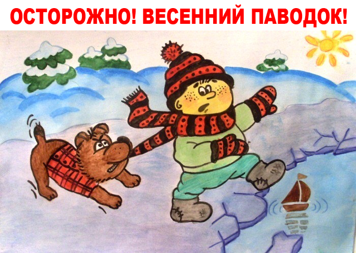 - Напоминайте об опасности нахождения на тонком льду водоёмов во время паводка.