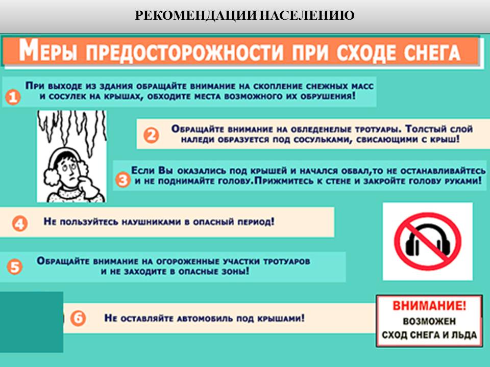 Предупреждение: Очищайте крыши домов от снега и наледи, не стойте под крышами с которых может упасть снег.