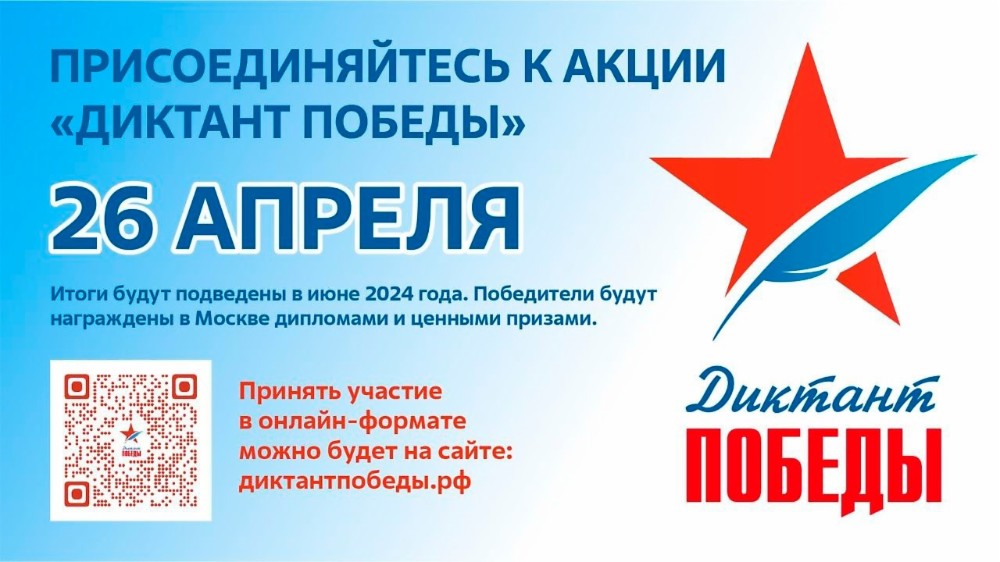 Опубликовано: 26.04.2024Диктант Победы – это Всероссийская историческая акция на тему событий Великой Отечественной войны, в которой наши учащиеся ежегодно принимают активное участие как в онлайн формате, так и на организованных площадках.