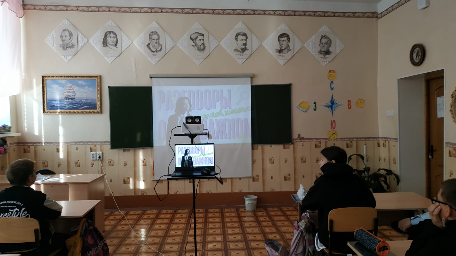 В ходе основной части занятия учащиеся, просмотрев видеоролик «Мир без учителя», сделали для себя следующие выводы: учитель – одна из важнейших в обществе профессий. Назначение учителя – социальное служение, образование и воспитание подрастающего поколения. В разные исторические времена труд учителя уважаем, социально значим, оказывает влияние на развитие образования членов общества. Учитель – советчик, помощник, участник познавательной деятельности школьников.