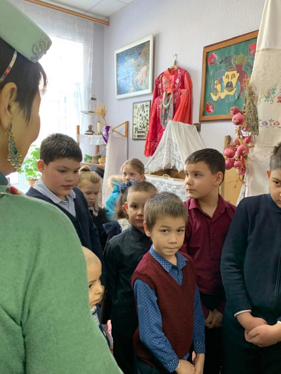 6 февраля учащиеся начальных классов совершили экскурсию в Дом культуры села Старое Шугурово в этнографический музей. Работники Дома культуры, Сайфутдинова Гузель Харисовна и Малышева Зульфа, в татарском национальном костюме радушно встретили ребят и провели очень интересную и познавательную экскурсию по залу музея с разными экспозициями, которые помогли понять и увидеть быт наших предков. В «татарской избе» ребята познакомились с предметы связанные с печью: кочергой, ухватом, старинной посудой. Узнали о том, что коромысло изготавливали из липы, осины, ивы – древесина, которых отличается легкостью, гибкостью, упругостью, увидели старинные часы, посуду. Девочек заинтересовали утюги, ткацкий станок, коромысло. А мальчиков - старинные инструменты, рубанок, подковы, серпы. В музеях экспонаты трогать нельзя, старое уходит, но его нужно знать и беречь. Наша старина вся пронизана добром, а это очень важно в наши дни, и особенно актуально для детей младшего возраста. Приобщая детей к истокам Русской, татарской, народной культуры, мы развиваем личность ребёнка. Народная мудрость гласит: «Не забывайте старь – она новизну держит».