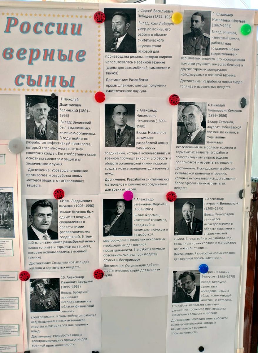 Опубликовано: 18.02.2025Провели научно-практическую конференцию, посвящённую 80летию Победы в Великой Отечественной войне "России верные сыны", о химиках, научные открытия которых ковали Победу. Активно участвовали учащиеся 10-11 классов.