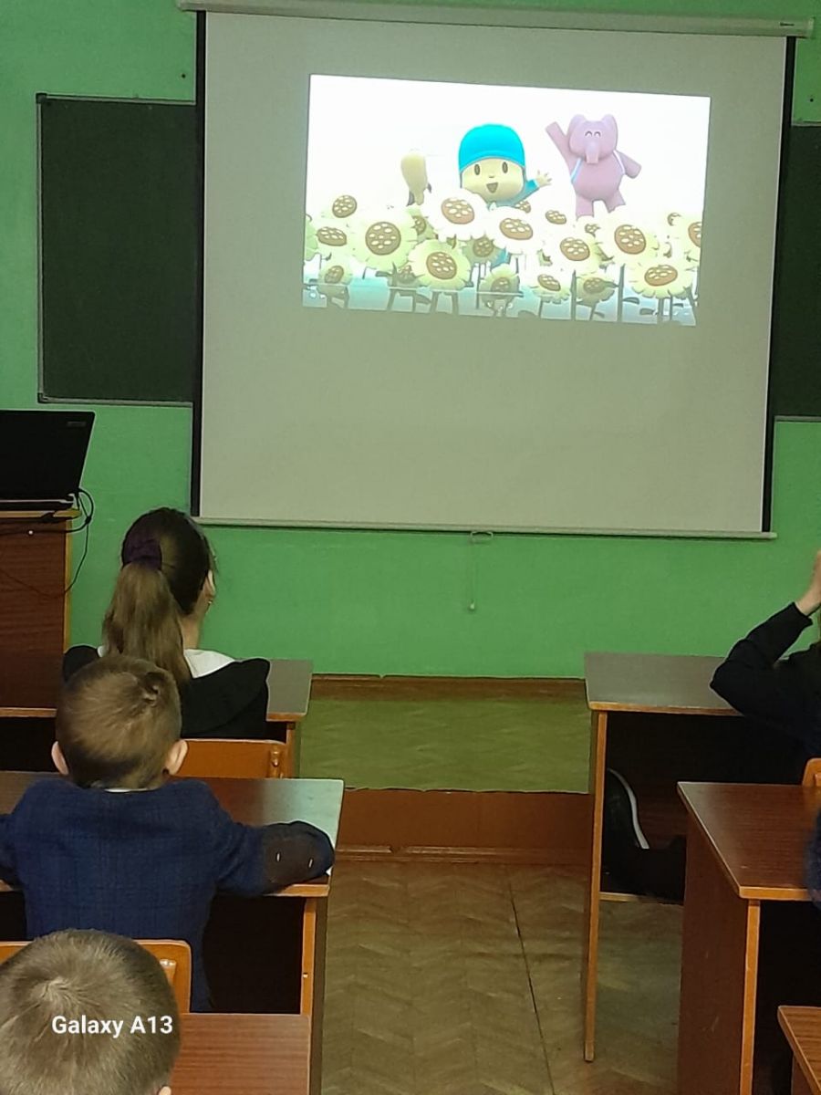 Опубликовано: 24.04.2025В рамках "Недели биологии в школе" для учащихся начальных классов организовали просмотр мультфильмов "Мальчик и Земля", "Покойо - защитник окружающей среды".