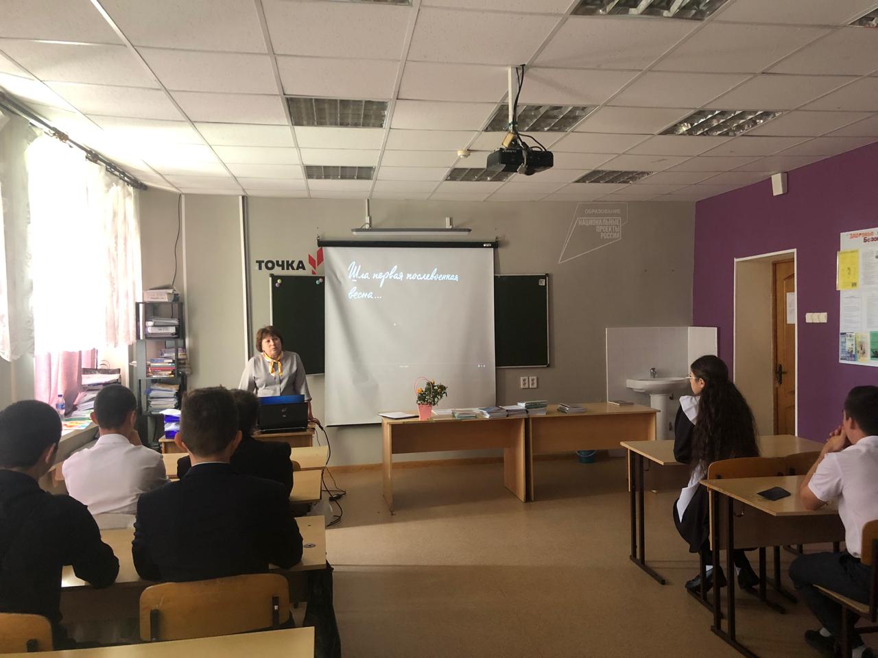 Для учащиеся 11 класса в рамках кинолектория «Помните!» был организован просмотр фильма Ф. Бондарчука «Судьба человека». После просмотра учитель литературы Хамзина З.Х. провела открытый диалог по содержанию фильма.