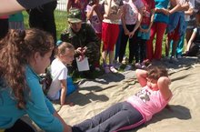 По итогам рабочего совещания с участием заместителя Премьер-министра Республики Татарстан В.Г. Шайхразиева по вопросам апробации и внедрения Всероссийского физкультурно-спортивного комплекса «Готов к труду и обороне» (ГТО), состоявшегося в г. Набережные Челны в рамках финала Фестиваля Всероссийского физкультурно-спортивного комплекса «Готов к руду и обороне» (ГТО) 19 июня 2015 года, с целью популяризации и продвижения идей Всероссийского физкультурно-спортивного комплекса «Готов к труду и обороне» (ГТО) среди обучающихся с 24 по 26 июня 2015 года организуется проведение Фестиваля Всероссийского физкультурно-спортивного комплекса «Готов к труду и обороне» (ГТО) для воспитанников пришкольных и загородных (стационарных) лагерей. Дети пришкольного лагеря "Күңелле балачак" сегодня также сдавали нормы ГТО.