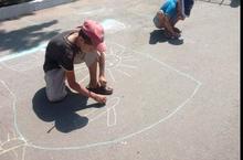 Площадка перед школой расцвела цветами, запестрела яркими птицами, узорами. На асфальте зажглись десятки солнц, пролегла радуга. Юные художники постарались от души. Все рисунки получили высокую оценку, а их авторы -призы.
