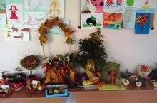 В школе проходит конкурс осенних поделок "Дары осени". Участвуют все классы, полет фантазии ребят безграничен!