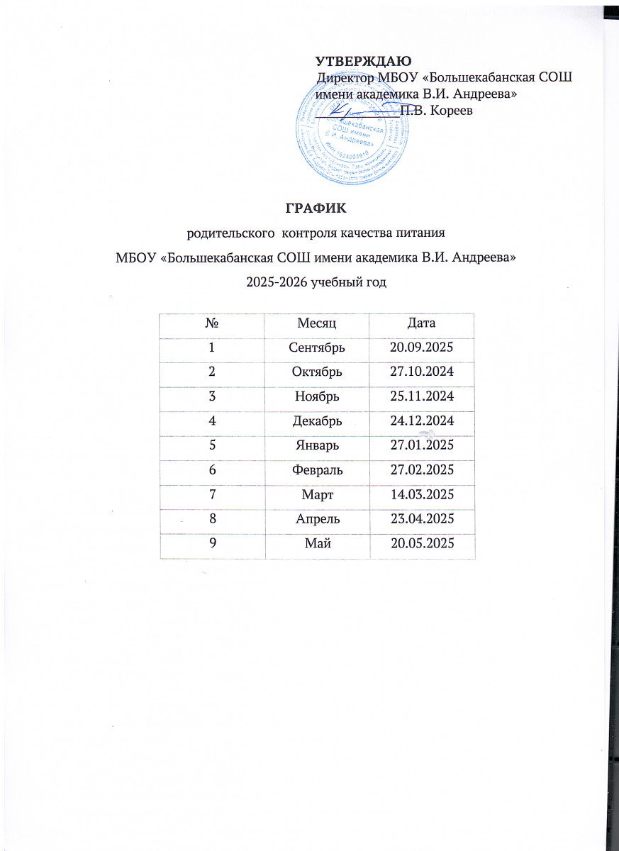 Положение по родительскому контролю за организацией и качеством питания обучающихся