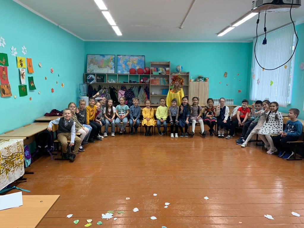 На улице пасмурно и холодно, не хватает солнечного света, а в наших первых классах царила теплая, доброжелательная атмосфера. В гости к ребятам пришла осень-красавица.