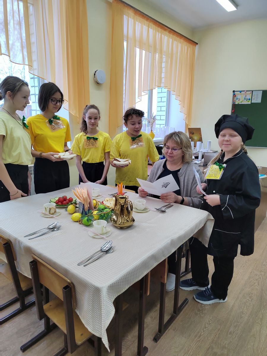 Опубликовано: 19.11.2022Сегодня на уроке технологии ученицы 6 А и 6 Б классов презентовали свои рестораны.
