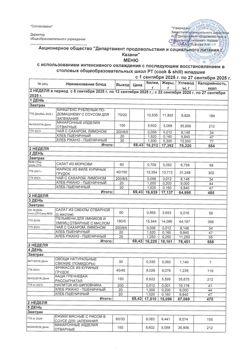 меню младшие вторая неделя (с 08.09.25 по 13.09.25) (с 22.09.25 по 27.09.25)