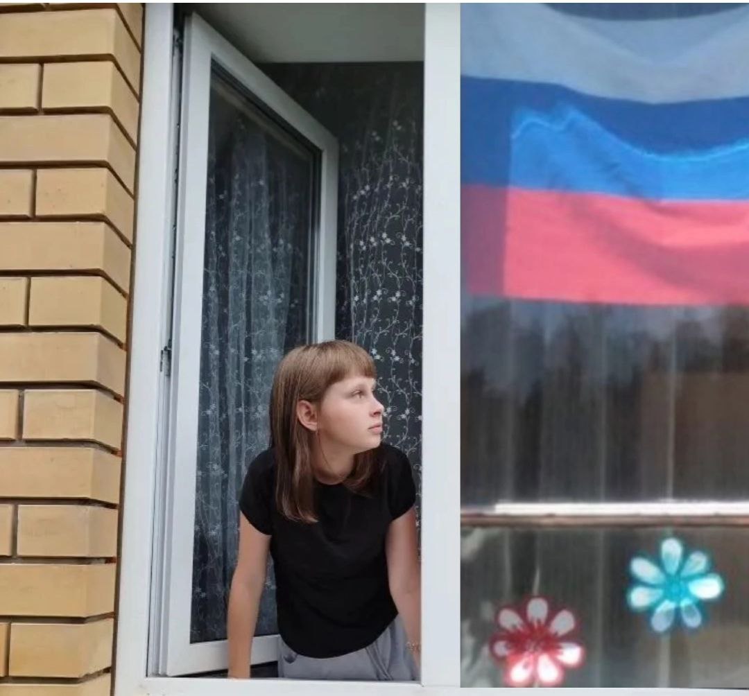 Три цвета гордости: как дети и родители вместе украсили окна в День Российского флага