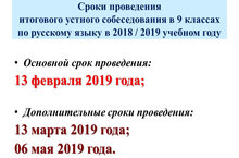 13 февраля - Итоговое собеседование в 9-ых классах 14.01.2019