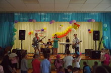 На сцене гимназии сегодня выступила вокально инструментальная группа "ЛаМунРай" перед отдыхающими пришкольного лагеря.
