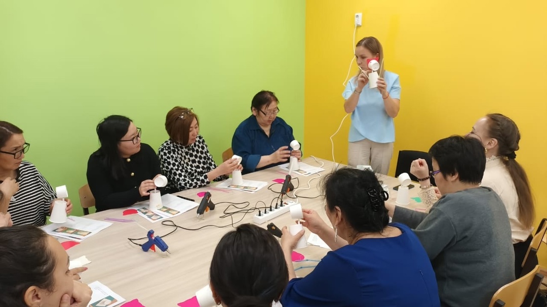 Гимназию на мероприятии представляла педагог-организатор, учитель труда (технологии) Динара Василовна Мордовская с мастер-классом "Поделка из вторсырья с применением механизма гибкой передачи".