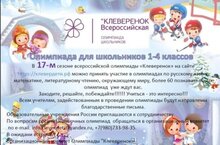 Всероссийская олимпиада "Клеверенок" можно принять участие по русскому языку, литературе, математике, окружающему миру. На сайте клевердети.рф. Желаем удачи!
