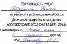 Поздравляем Габдуллина Раниля за активное участие в конкурсе"Созвездие-Йолдызлык-2012".