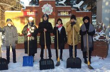 Ученики МБОУ "ИСОШ" - Юнармейцы - привели в порядок территорию обелиска. -
