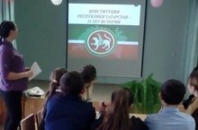 В МБОУ "Именьковская СОШ" прошел Парламентский урок на тему: "Конституция РТ--25 лет истории" с участием учителя истории и обществознания Хайбуллиной Л.З, учениками 8, 10 классов и заместителем директора по ВР Харисовой Ч.Х. Учащиеся ознакомились с основным законом РТ, узнали историю Конституции, просмотрели содержательную презентацию. Ребята подготовили информационный стенд, чтобы и другие ученики узнали про такое замечательное событие.