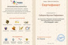 26 января Талдин Никита, Мамлеева Аделина и Сабиров Муслим приняли участие в Первом всероссийском метапредметном конкурсе «УСПЕВАЙ-КА». Ждём результатов.