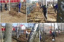 Сегодня в школе прошел субботник. Учащиеся и учителя вышли убирать территорию школы и прилегающие к ней участки дорог, трассы: был собран мусор, с газонов граблями убраны сухая трава.