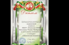 Дипломом за подготовку победителей в конкурсе "Лаишевская вышивка" награждается учитель начальных классов МАМЛЕЕВА РИММА МУБАРАКОВНА.Муниципальное
