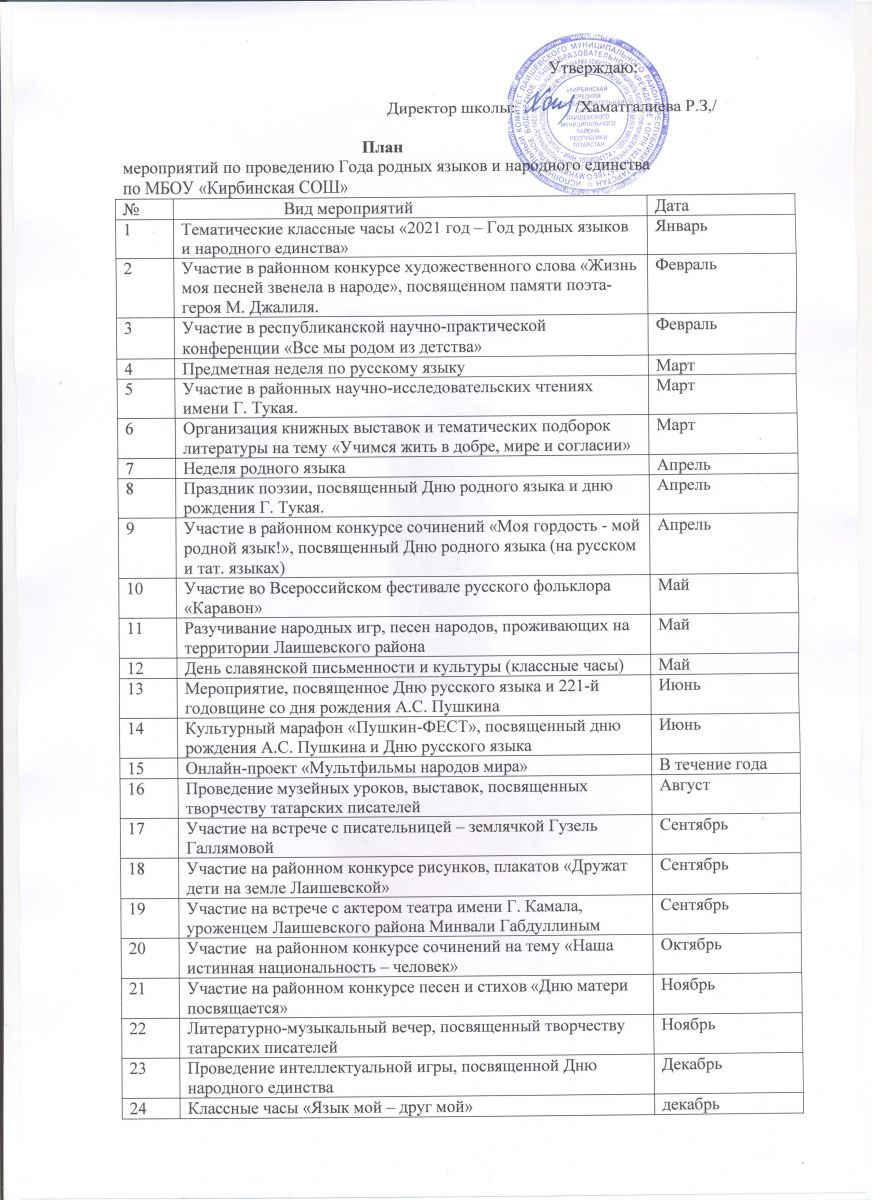 План мероприятий по проведению года родных языков и народного единства В РТ