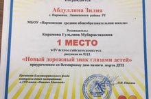 Поздравляем учащихся 4 класса Абдуллину Зилю и Лутфуллину Ралину с победой в IV всероссийском конкурсе рисунков по ПДД «Новый дорожный знак глазами" 27.10.2020