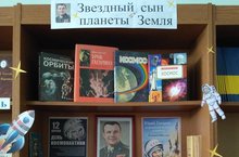 Сегодня в школьной библиотеке прошла выставка литературы, посвященная дню космонавтики. 12.04.2018