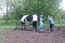 Полным ходом идет работа на пришкольном участке.