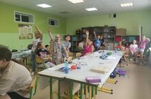 Очередной день в пришкольном лагере "Солнышко" прошëл очень весело. После вкусного завтрака провели командную игру "Физкульт - Ура! ", в рамках которой была эстафета, а потом дружеский матч по футболу. Также прошëл общий сбор отряда " От идеи - к делу! ".Ребята разработали и провели праздник " Фестиваль русской культуры ", показали театральную кукольную постановку " Колобок", поводили хоровод, поиграли в народные игры.