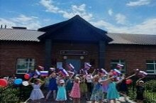 Ребята пришкольного лагеря "Солнышко" выступили перед жителями села, поздравили их с праздником. Итогом дня стала выставка открыток " Моя Родина - Россия! " -
