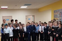 В рамках преемственности дошкольного и школьного образования учащиеся 6-б класса и ребята из детского сада "Солнышко" совместно произвели поднятие флага и исполнение гимна России.