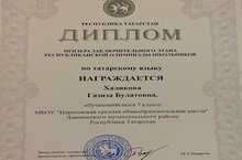 Ученица 7 класса, Халикова Газиза, стала призёром республиканской олимпиады по татарскому языку. Поздравляем Газизу и Мухаметшину Разину Минвалеевну! Желаем дальнейших успехов!