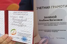 Занина А.В. награждена почетной грамотой Миниситерства по делам молодёжи РТ за заслуги в реализации молодёжной политики РТ!