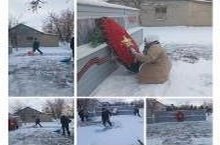 Операция "Памятник " продолжается. Учащиеся 7 класса убрали снег 29.11.2021