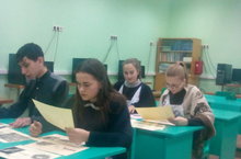 Учащиеся 8-9 классов за разгадвванием кроссвордов.