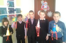 Ученики школы мастерят символ наступающего года - веселых петушков и украшают классы