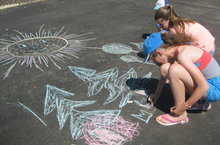 Сегодня в пришкольном лагере "Солнышко" прошел конкурс рисунков на асфальте на противопожарную тематику