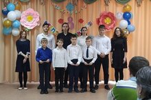 Учащиеся поздравили педагогов и работников школы с праздником 8 марта.