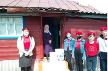 Отряд ЮнАрмии "Патриоты России" поздравили с наступающим праздником Великой Победы ветерана педагогического труда, труженицу тыла Гвоздареву Марию Наумовну