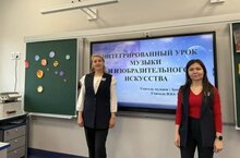 Учитель музыки Венера Исламутдиновна Замалетдинова и учитель ИЗО Юлия Владиславовна Бесчастная провели открытый урок по теме «Космический пейзаж».