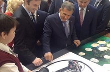 Президент Татарстана Рустам Минниханов посетил сегодня казанский ИТ-парк Усады. Своих роботов на выставке представила Песчано-Ковалинская СОШ кружок "Робототехника". 04.02.2015