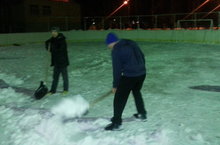 Идет подготовка к заливки льда на хоккейной коробке. Наши ученики и любители хоккея сегодня приняли участие по очистке коробки от снега. 22.12.2014