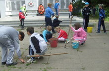 Сегодня в пришкольном лагере "Радуга" прошел субботник у памятника погибшим войнам в Великой отечественной войне. 19.06.2014