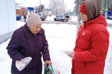 Волонтеры нашей школы предлагали всем желающим листовки о блокадном Ленинграде и раздавали хлеб, расфасованный в упаковки по 125 граммов - суточная норма на человека в блокадном Ленинграде. Кусочек хлеба воспринимают как символ тех страшных лет.