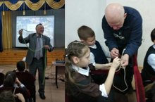 Сегодня у нас в гостях мастера спорта по туризму, заслуженные работники по физической культуре РТ: путешественник Ильдар Замалетдинов, кандитат в мастера спорта по туризму Владимир Баранов. Для всех участников был проведен мастер - класс по вязке узлов.