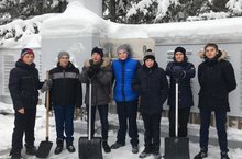 Члены отряда юноармейцев очистили от снега памятник павшим воинам односельчанам.